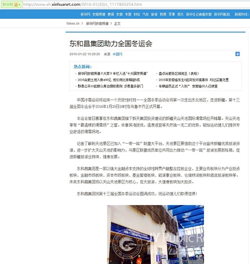 第十三届全国冬运会开幕暨新闻发布会 活动地点: 乌鲁木齐 天山天池国际滑雪场 活动时间: 2016.1.20 活动介绍: 中国冰雪运动将迎来一个历史性时刻——全国冬季运动会将第一次走出东北地区,走进新疆。第十三届全国冬运会于2016年1月20日18时在乌鲁木齐正式开幕。 活动效果: 冬运会首日赛事在东和昌集团旗下新天集团投资建设的新疆天山天池国际滑雪场拉开帷幕。天山天池享有“最温暖的滑雪场”之誉,依靠其海拔低,温度适宜等天然独一无二的优势,能给运动健儿们提供专业舒适的滑雪场地。本次新闻发布由精鹰公关全程策划执行!